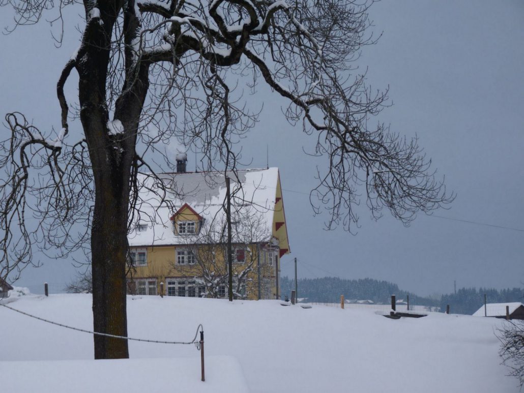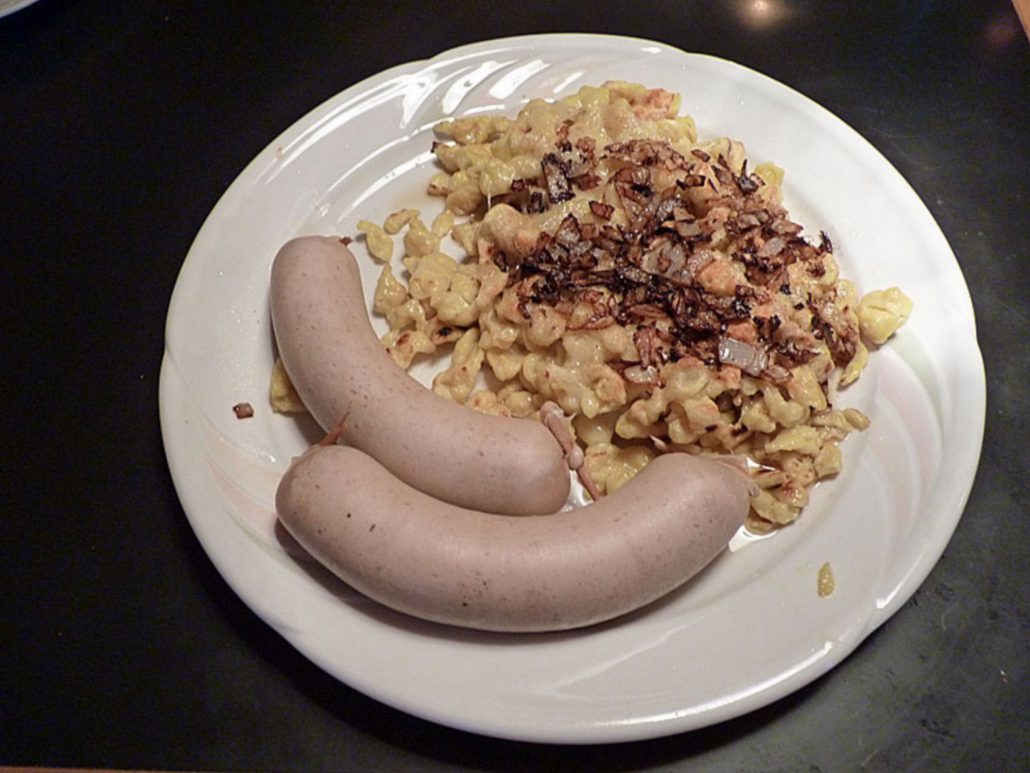 On a chilly winter day, nothing comforts the soul more than a plate of steaming “Südworscht” (similar to “Weisswurst”, the light-colored sausage famous in Munich) with “Chäsknöpfli” (Spätzle with melted Appenzeller cheese and crisp fried onions), accompanied by home-made apple sauce!  This is one of the Appenzell’s signature dishes.  There are many more delectable things to taste here as well: a scrumptious “Schlorzifladä” (pie with pear paste and custard), an Appenzeller “Biber” (this is almond cream in two layers of soft gingerbread), “Mostbröckli” (dried beef), and “Alte Ma” or “Chäs Schobbe” (one of my favorites: crisp pieces of bread with herbs, onions, and lots of melted cheese).
