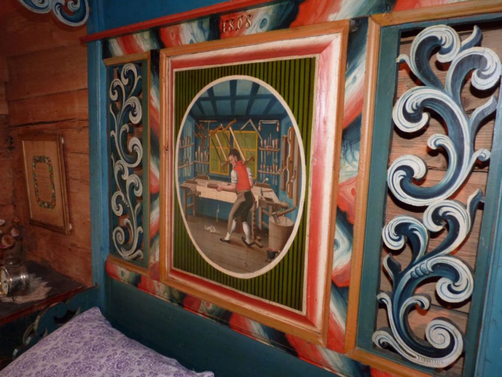 The Appenzell is famous for its Bauernmalerei, or “Farm Painting”, a very distinctive form of primitive art that became popular in the early 19th century.  Though there are several famous Bauernmalerei artists, many paintings were unsigned, a typical occurrence because this was art created by the farmers or handymen themselves in their spare time. The subjects of these paintings are the subjects that were important in their lives: their animals, their farms, and the surrounding mountains.